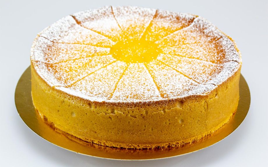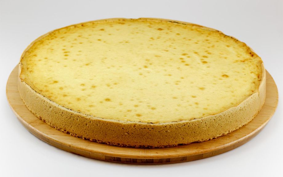 Mürbeteigboden mit hausgemachter Quarkmasse und frischer Sahne.