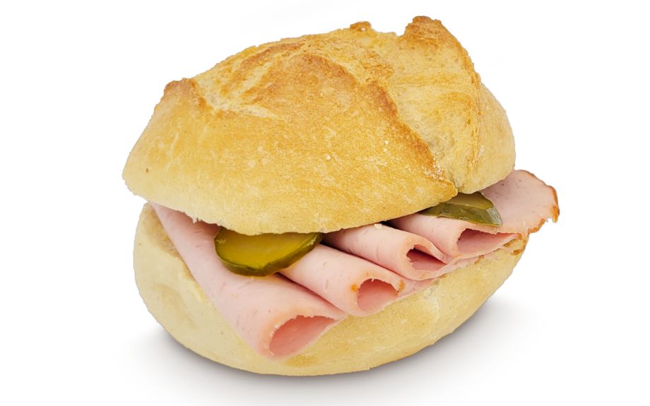 Schmidts Baguettesemmel mit zartem Hinterschinken und mildem Gouda Käse auf Lollo Bionda Salat.