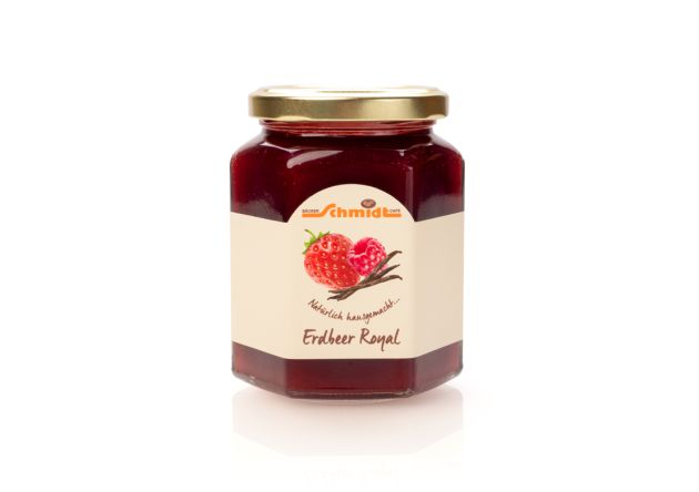 Unser fein passiertes Mus besteht aus besonders vielen Erdbeeren und Himbeeren und wird mit echter Bourbon Vanille verfeinert!
