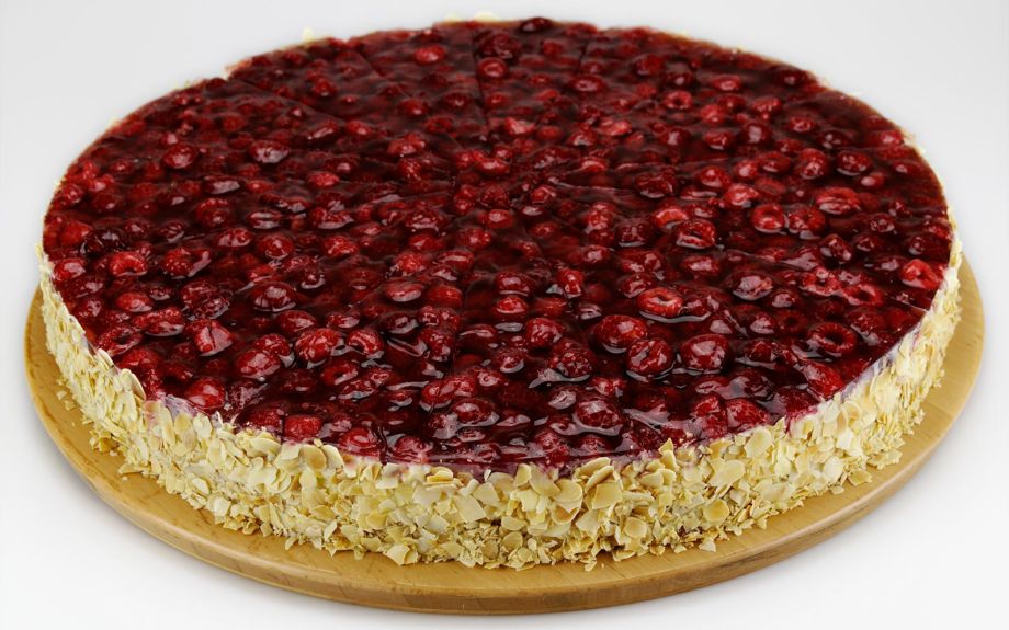 Locker leichter heller Biskuit mit fruchtig-frischer Waldfrucht-Joghurt-Sahne gefüllt und als Fruchtkick noch ein Waldfruchtspiegel oben drauf. Unser leckerer Mandel-Biskuit-Rand darf natürlich nicht fehlen.