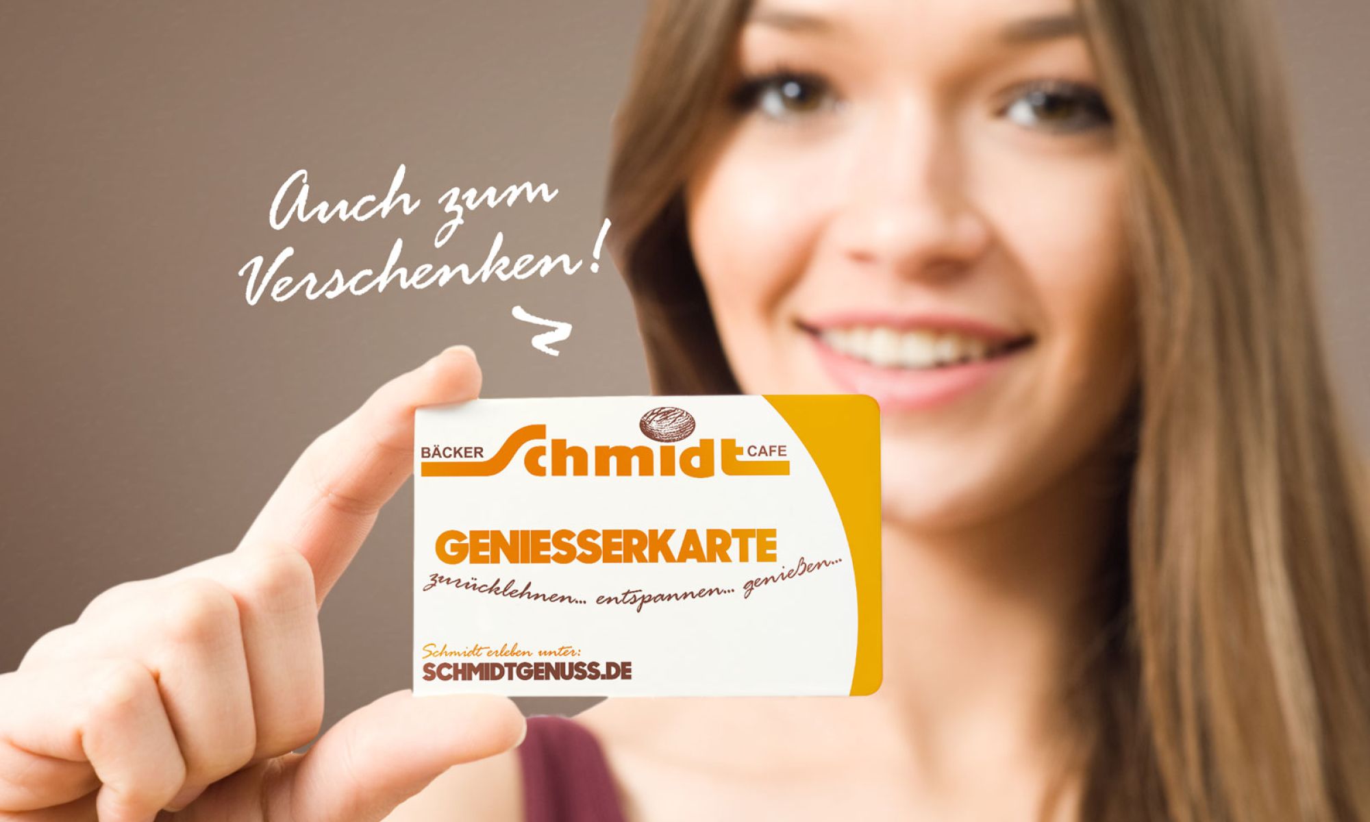 Sie sind auf der Suche nach einem außergewöhnlichen Geschenk? Sie möchten die Vorteile einer schnellen, bequemen und sicheren Bezahlung für sich nutzen? Dann ist die Genießerkarte von Ihrem Bäcker Schmidt genau das Richtige!