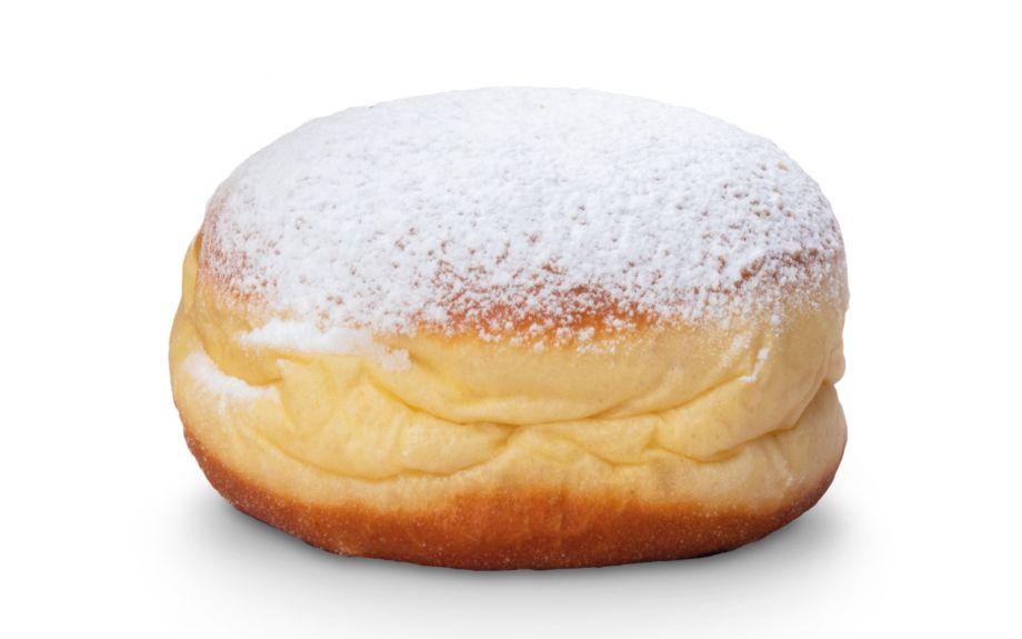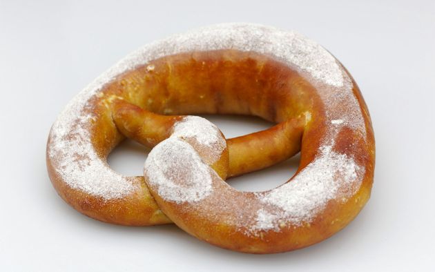 Hefeteig in pflanzlichem Öl gebacken und mit Zuckerglasur überzogen.