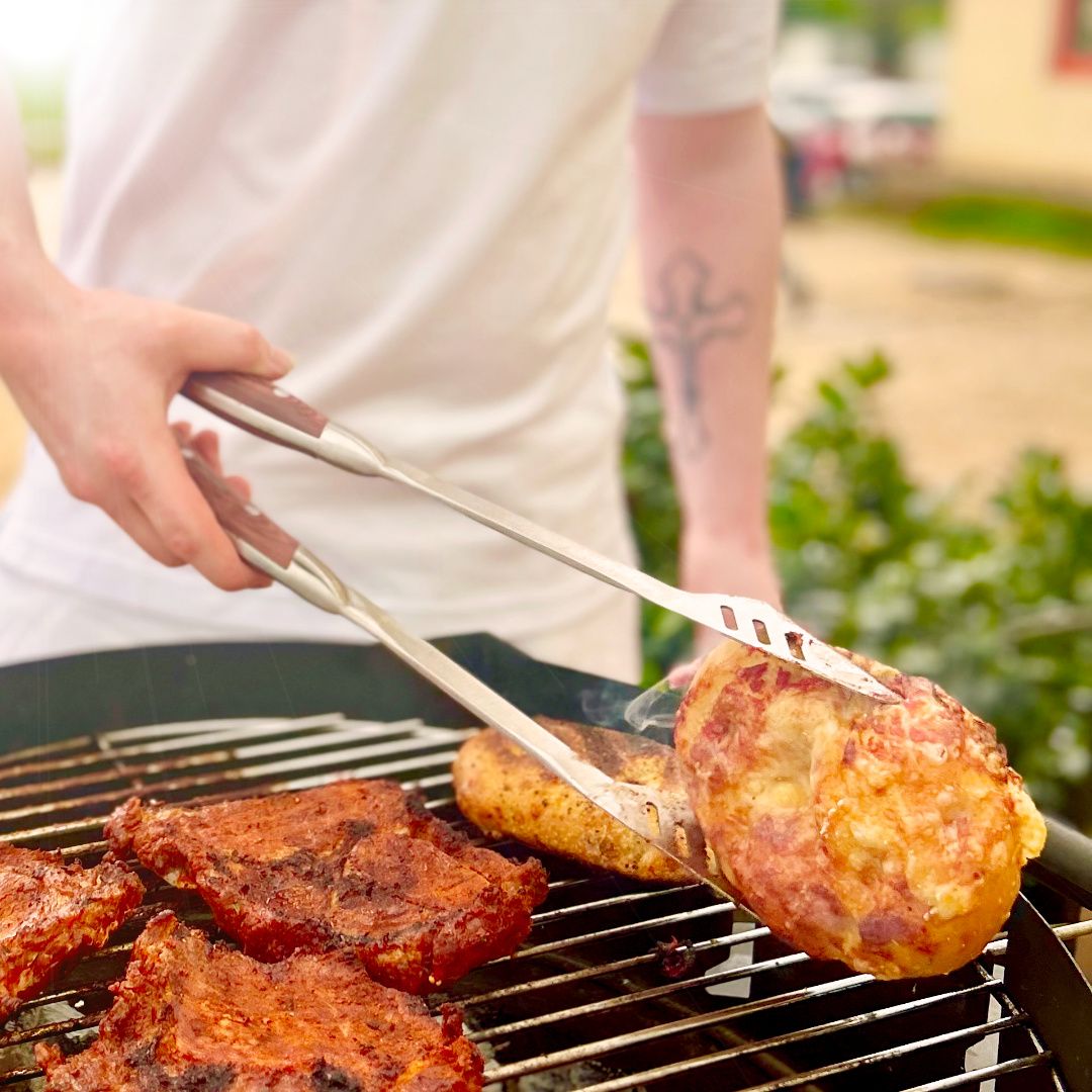 Wer etwas mehr Appetit hat, schafft vielleicht auch einen ganzen Griller. Mit seiner dekorativen ovalen Form passt der Griller auch super auf den Grill, noch zum Fleisch mit dazu. Der passt immer noch irgendwo mit auf den Rost und deswegen ist für mich in erster Linie das Format das entscheidende.